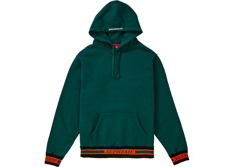 The Supreme Striped Rib Hooded Sweatshirt Dark Green is now available at Side Kicks!