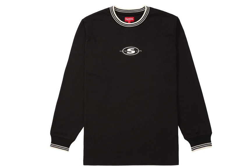 The Supreme Striped Rib Logo L/S Top Black is now available at Side Kicks!