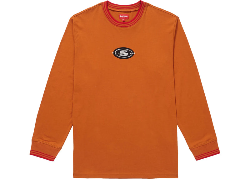 The Supreme Striped Rib Logo L/S Top Burnt Orange is now available at Side Kicks!