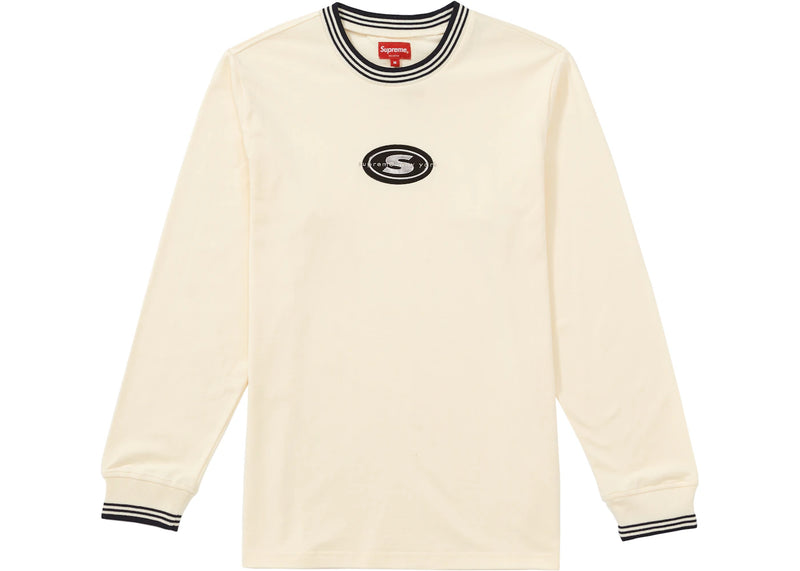 The Supreme Striped Rib Logo L/S Top Natural is now available at Side Kicks!