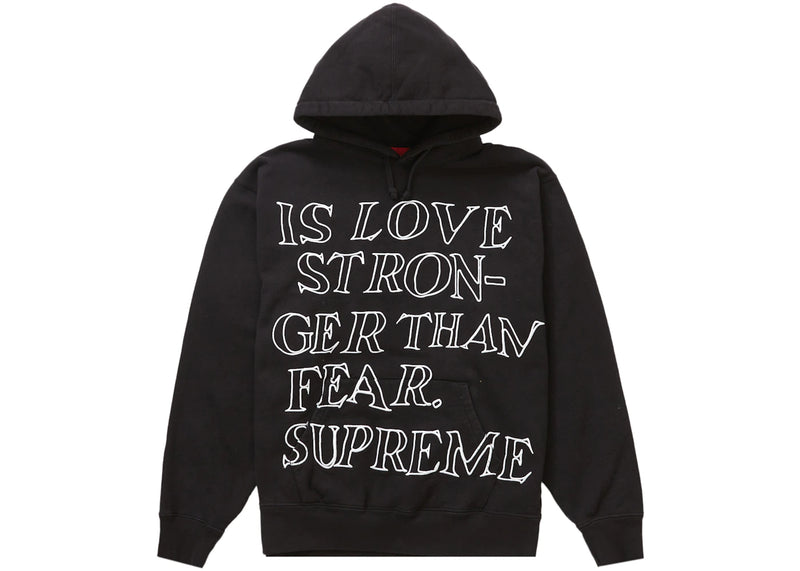 The Supreme Stronger Than Fear Hooded Sweatshirt Black is now available at Side Kicks!