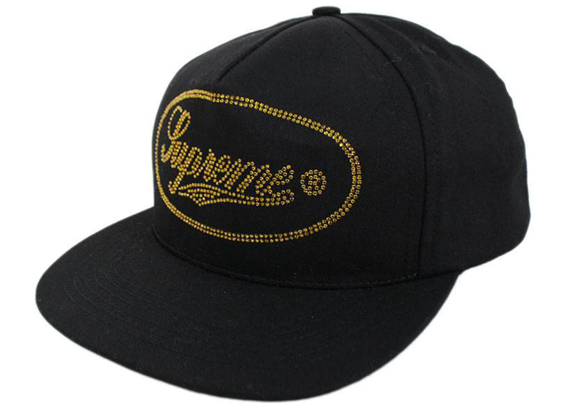 The Supreme Studded Script Logo 5-Panel Black is now available at Side Kicks!