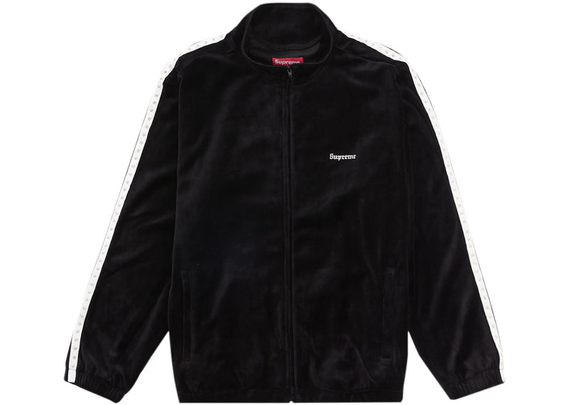 The Supreme Studded Velour Track Jacket Black is now available at Side Kicks!