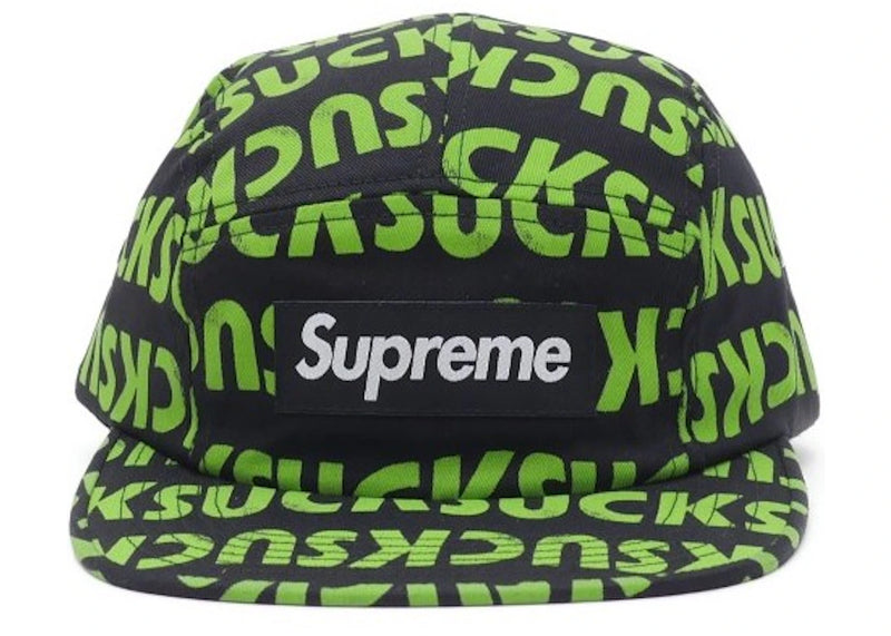 The Supreme Suck Camp Cap Black is now available at Side Kicks!