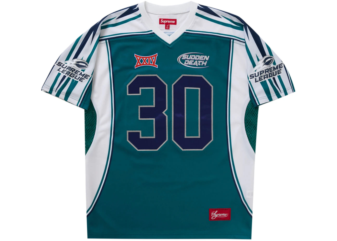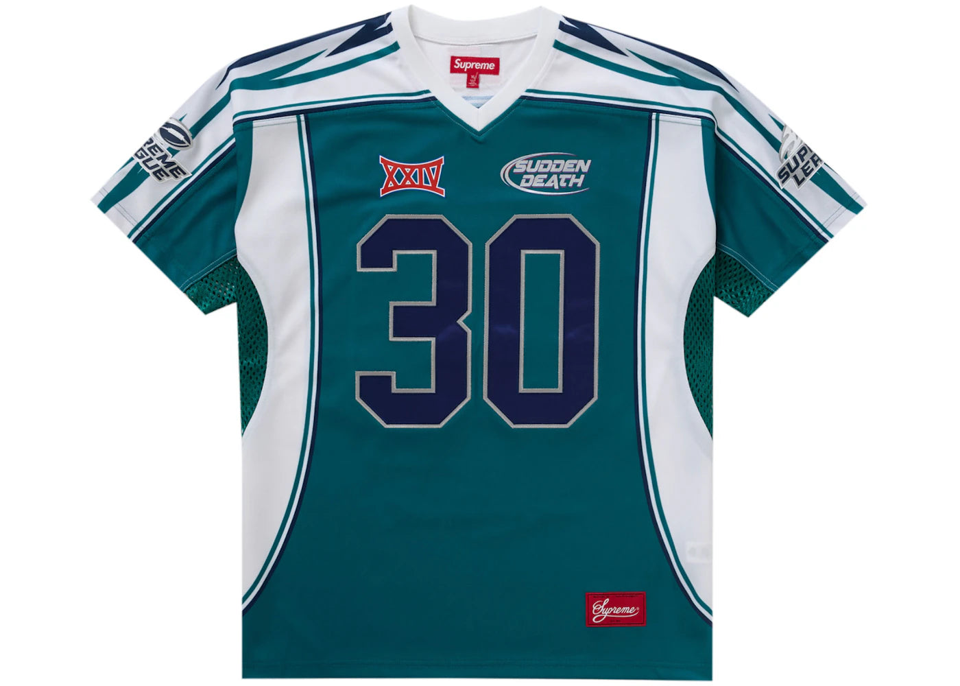 The Supreme Sudden Death Football Jersey Teal is now available at Side Kicks!