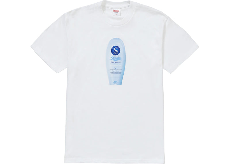 The Supreme Super Cream Tee was part of Supreme's Fall/Winter 2019 Week 1 collection, featuring a graphic of an inverted Nivea "Super Cream" bottle with the brand name. It came in eight color options. Released on August 22, 2019, the Supreme Super Cream Tee is available now at Side Kicks.