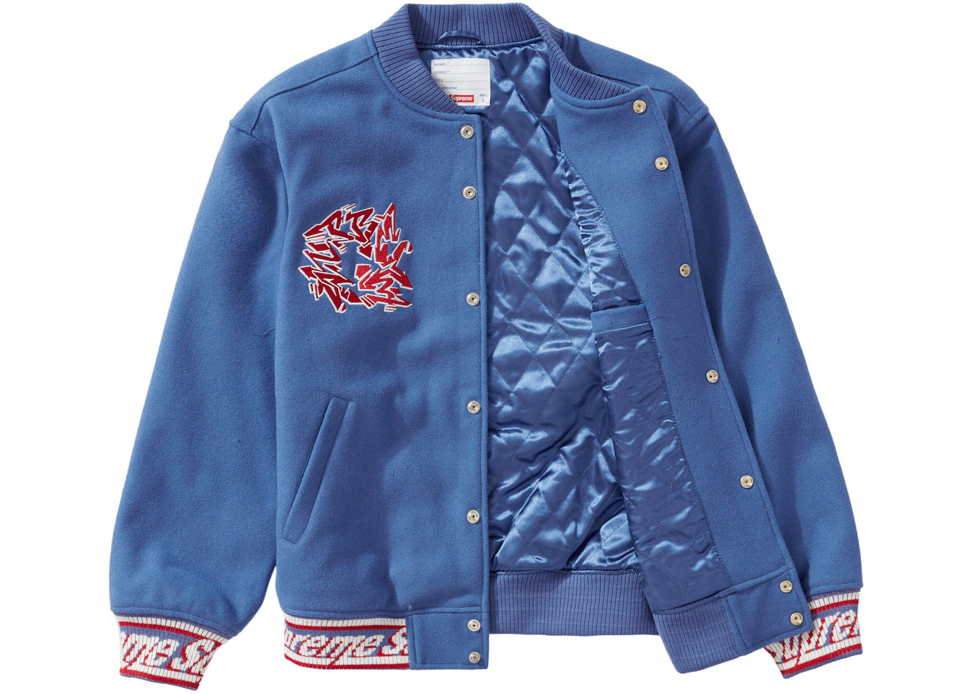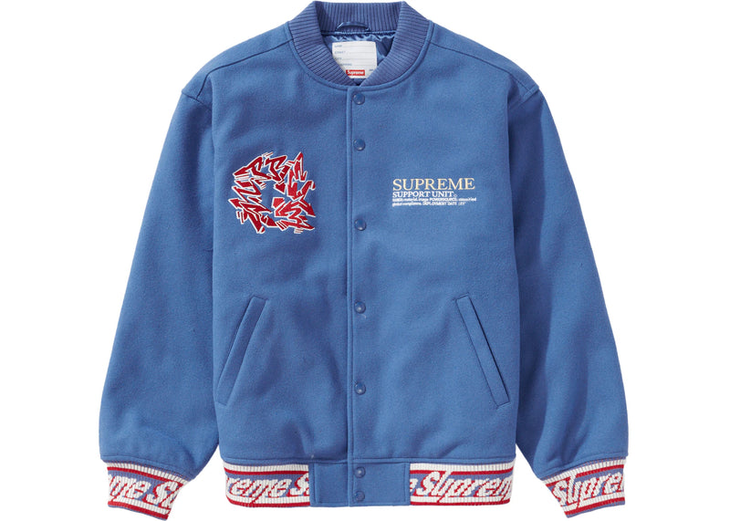 The Supreme Support Unit Varsity Jacket Light Blue is now available at Side Kicks!