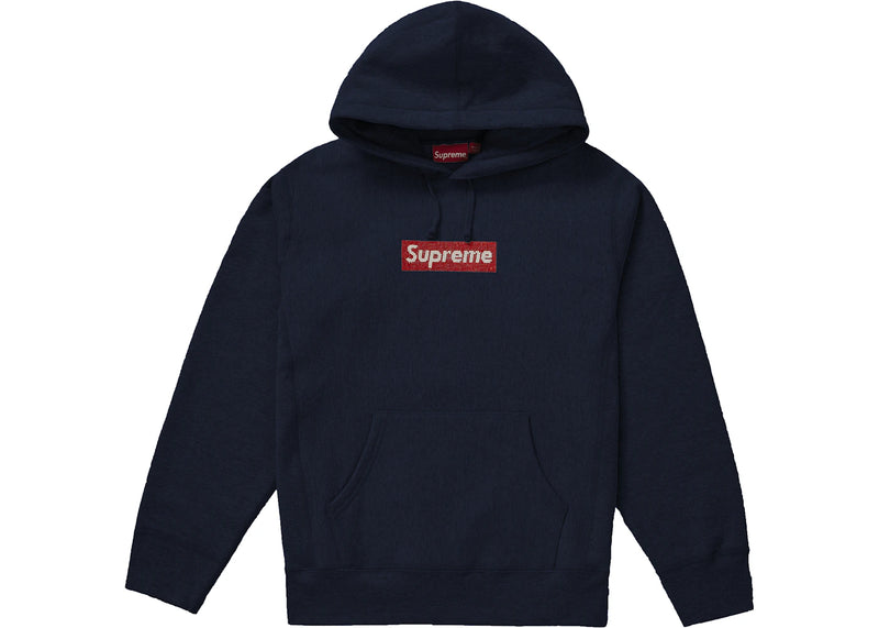 The Supreme Swarovski Box Logo Hooded Sweatshirt Navy is now available at Side Kicks!