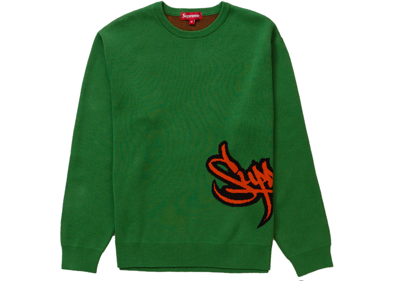 The Supreme Tag Logo Sweater Green is now available at Side Kicks!