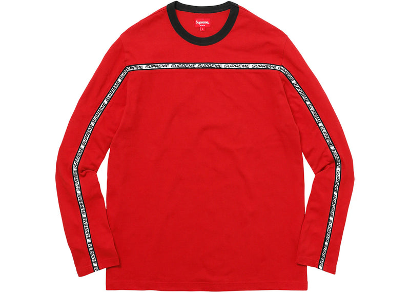The Supreme Tape Stripe L/S Pique Top Red is now available at Side Kicks!