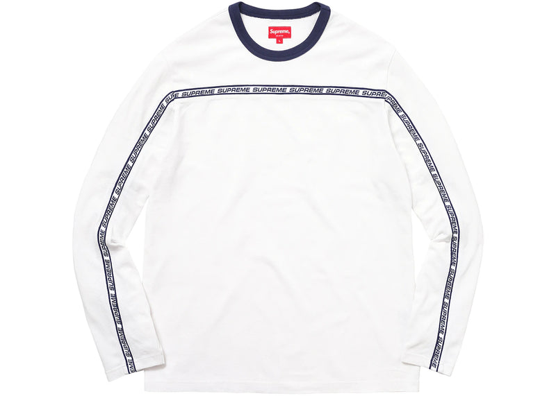 The Supreme Tape Stripe L/S Pique Top White is now available at Side Kicks!
