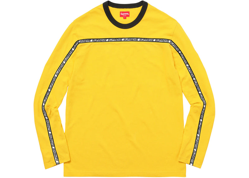 The Supreme Tape Stripe L/S Pique Top Yellow is now available at Side Kicks!