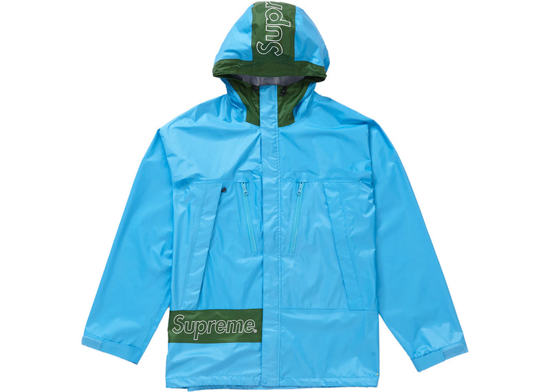 The Supreme Taped Seam Jacket (SS19) Cyan is now available at Side Kicks!
