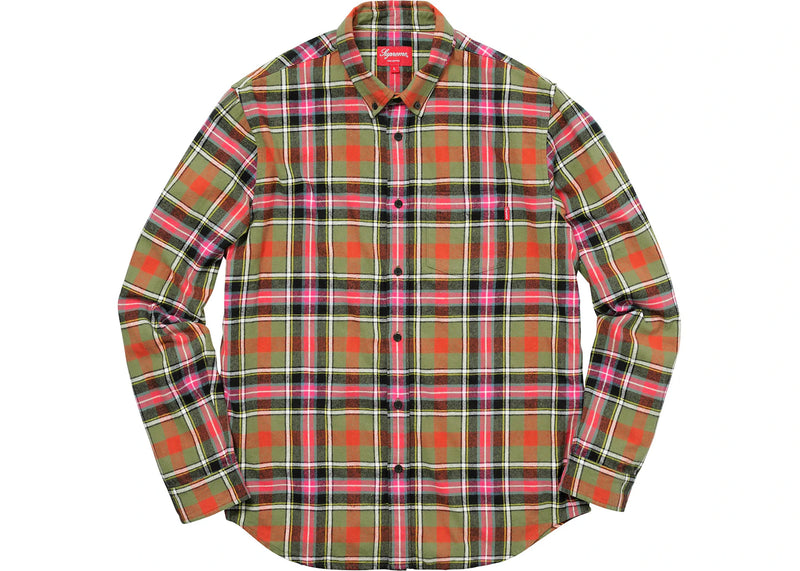 The Supreme Tartan Flannel Shirt Olive is now available at Side Kicks!