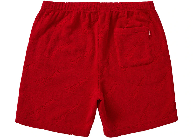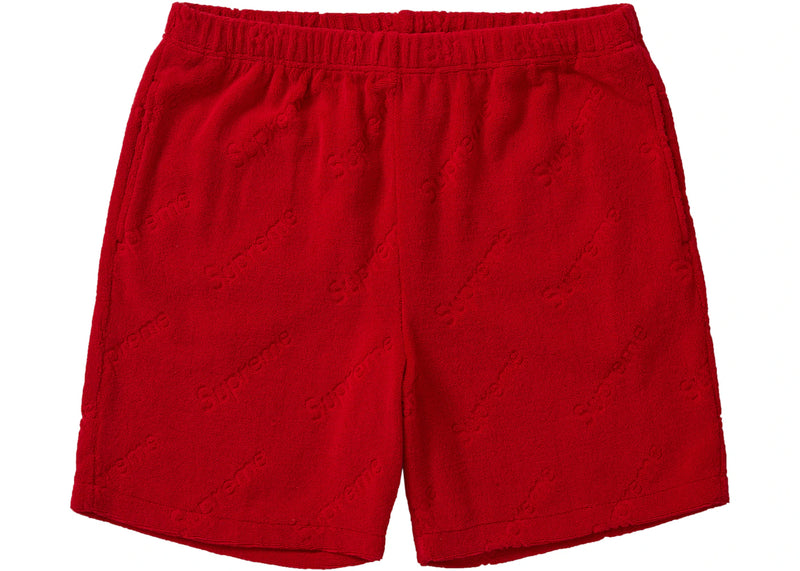 The Supreme Terry Jacquard Logo Short Red is now available at Side Kicks!