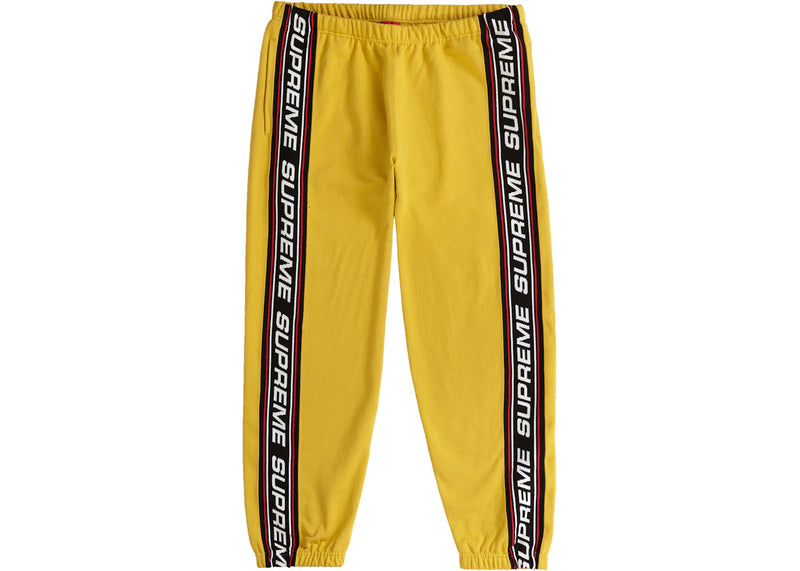 The Supreme Text Rib Sweatpant Mustard is now available at Side Kicks!