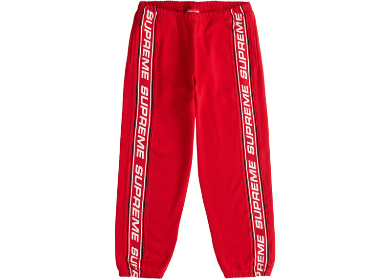 The Supreme Text Rib Sweatpant Red is now available at Side Kicks!