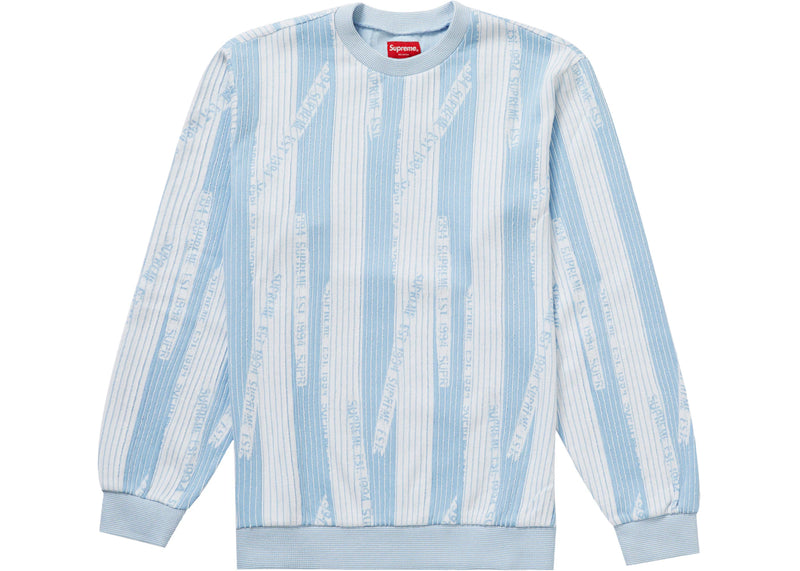 The Supreme Textured Stripe Crewneck Light Blue is now available at Side Kicks!