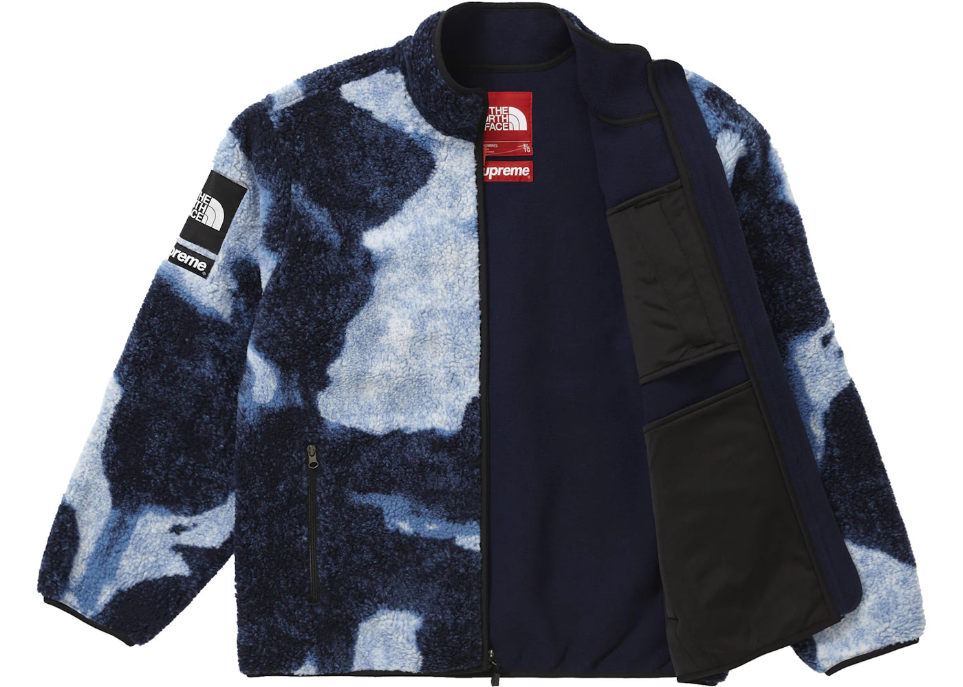 Supreme The North Face Bleached Denim Print Fleece Jacket Indigo