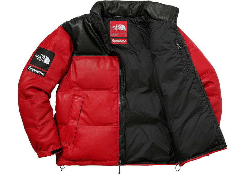 The Supreme The North Face Leather Nuptse Jacket Red is now available at Side Kicks!