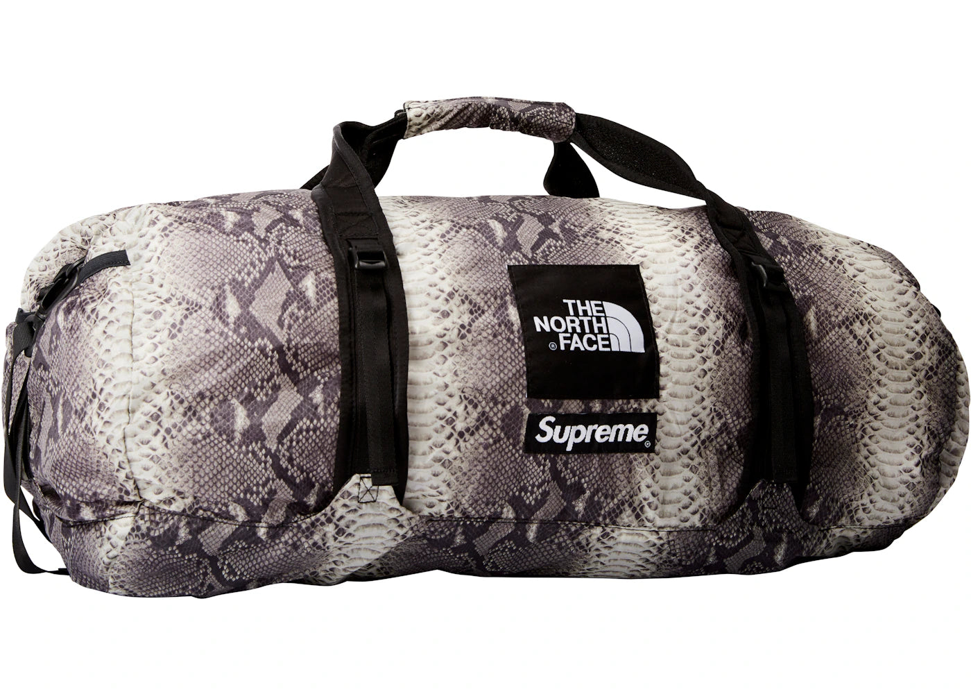 The Supreme The North Face Snakeskin Flyweight Duffle Bag Black is now available at Side Kicks!