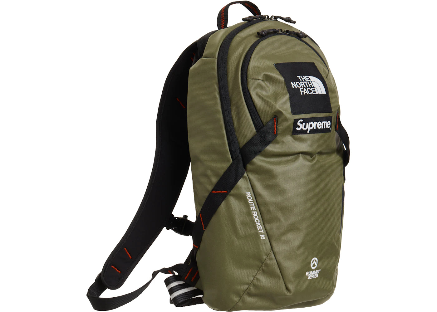 The Supreme The North Face Summit Series Outer Tape Seam Route Rocket Backpack Olive is now available at Side Kicks!