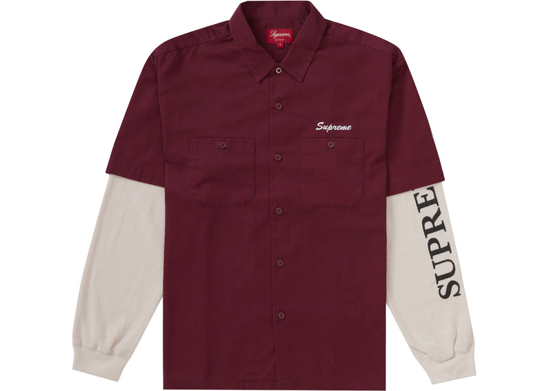 The Supreme Thermal Work Shirt Dusty Maroon is now available at Side Kicks!