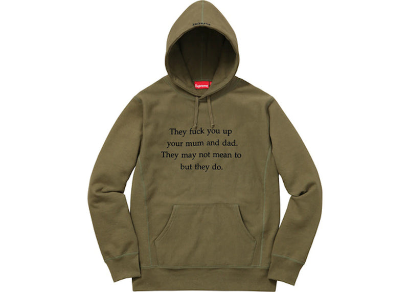 The Supreme They Fuck You Up Hoodie Olive is now available at Side Kicks!