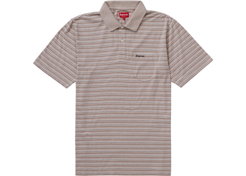 The Supreme Thin Stripe Polo Tan is now available at Side Kicks!