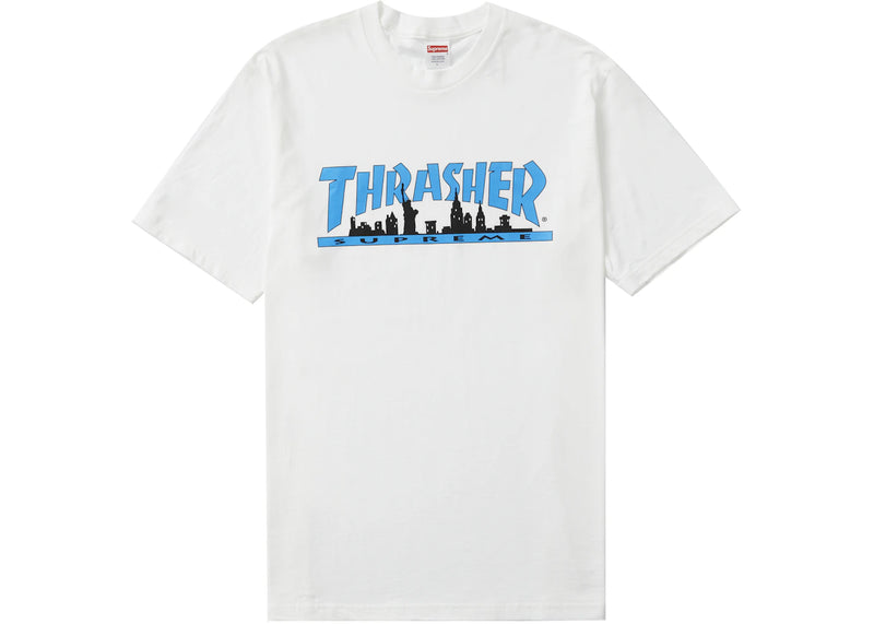 The Supreme Skyline T-Shirt was part of the Fall/Winter 2021 Week 5 Thrasher collaboration, featuring over 45 new apparel items. Made in black, it showcases a red and white Supreme...