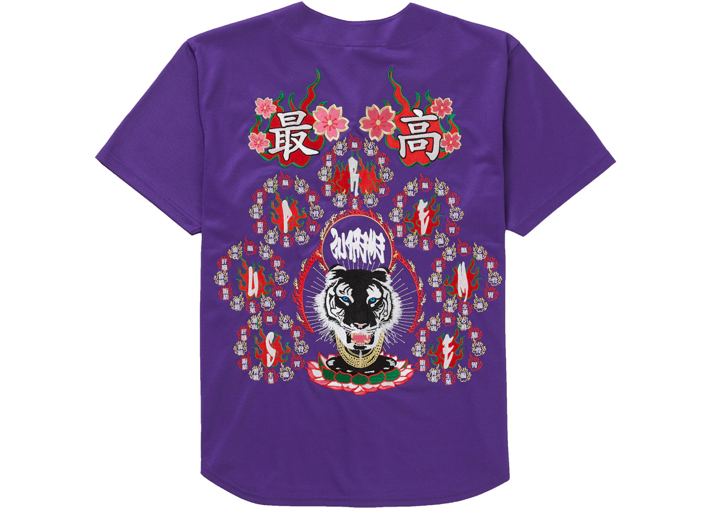 Supreme Tiger Embroidered Baseball Jersey Purple