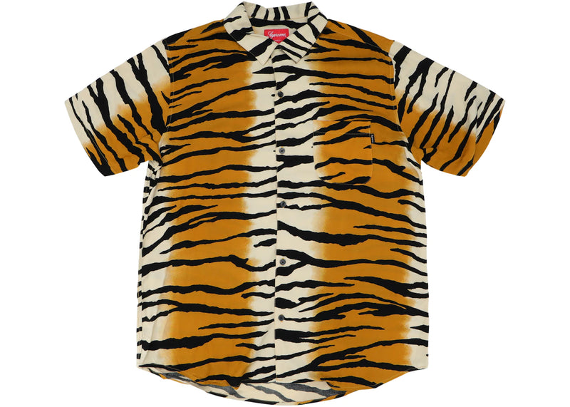The Supreme Tiger Stripe Rayon Shirt Gold is now available at Side Kicks!