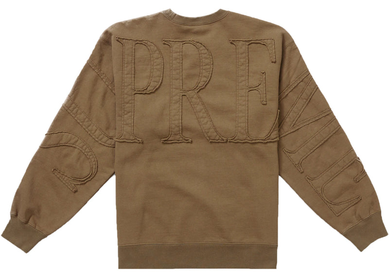 The Supreme Tonal Applique Crewneck Olive Brown is now available at Side Kicks!