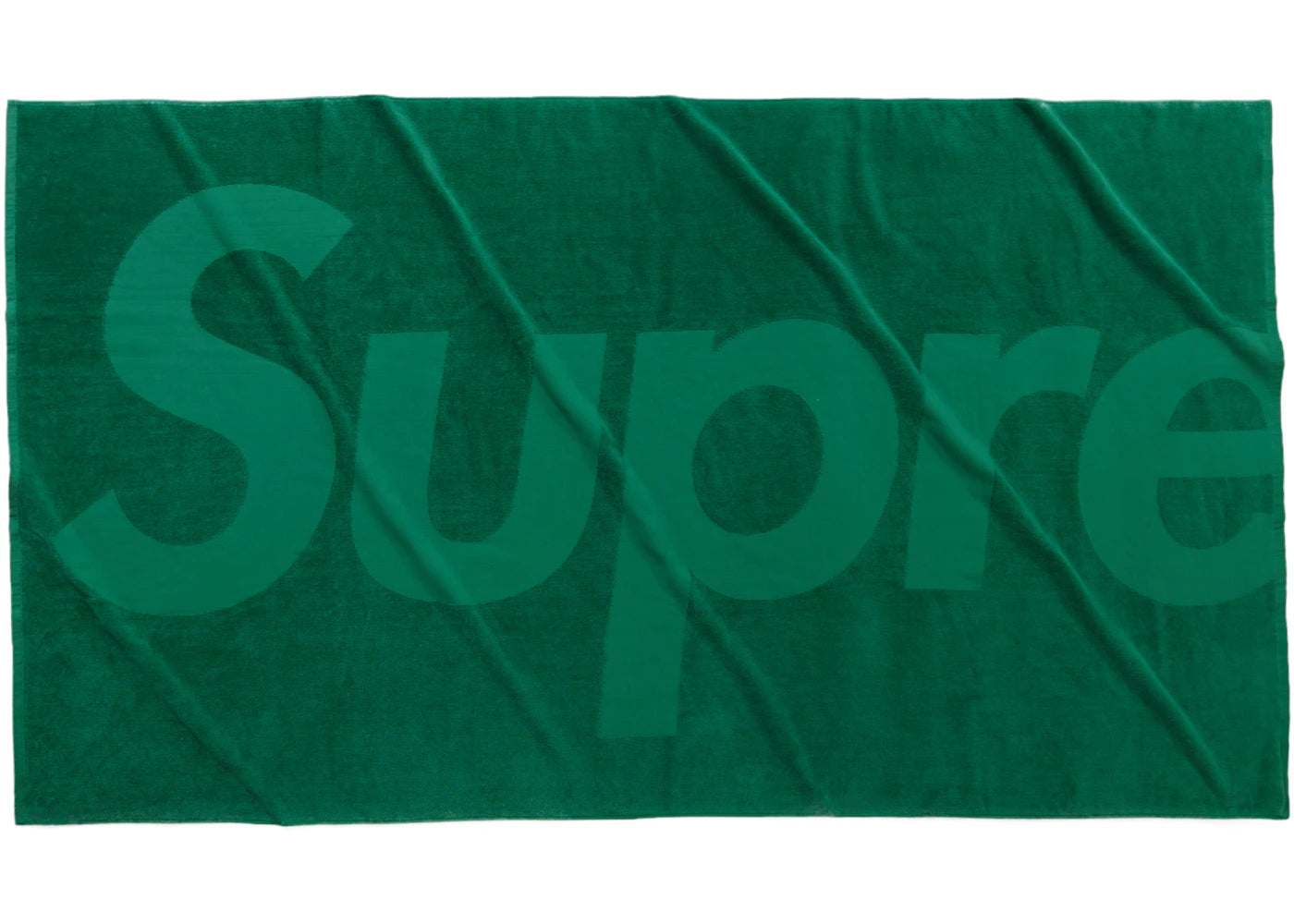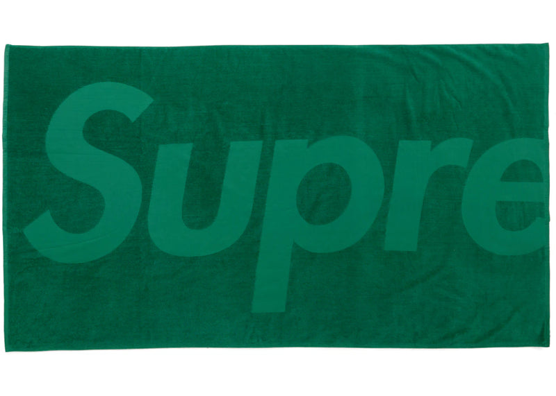 The Supreme Tonal Logo Towel Green is now available at Side Kicks!