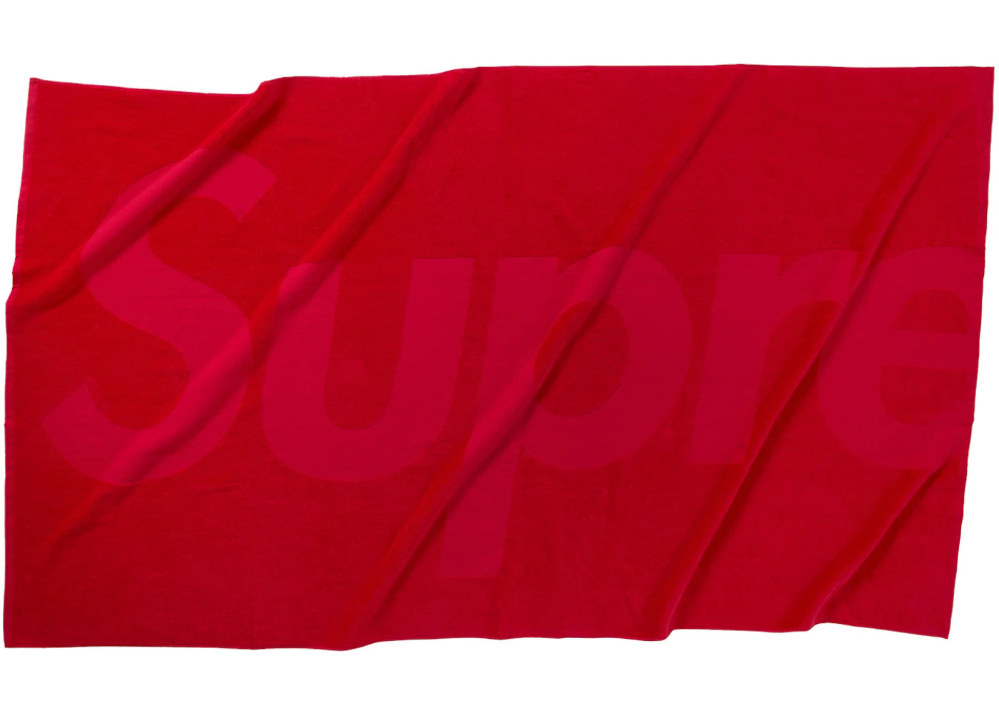 The Supreme Tonal Logo Towel (SS24) Red is now available at Side Kicks!