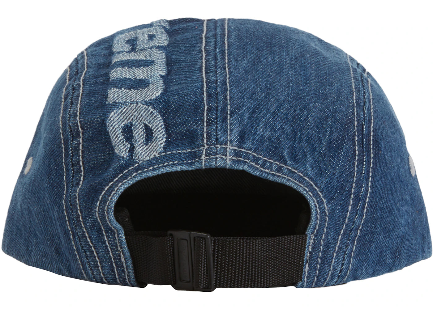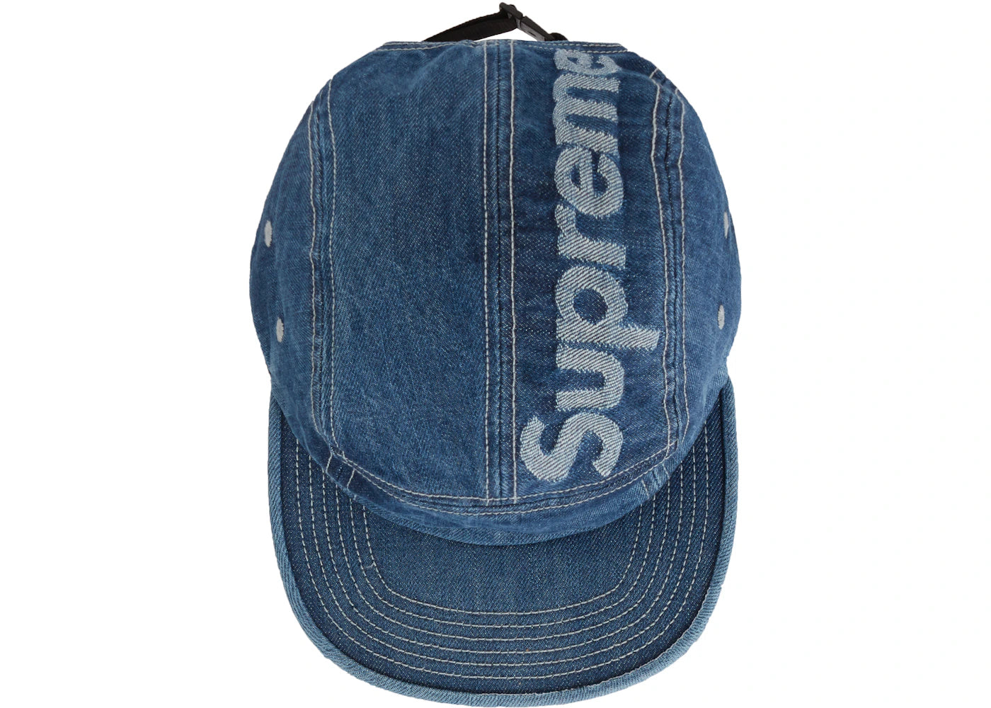 The Supreme Top Logo Denim Camp Cap Blue is now available at Side Kicks!