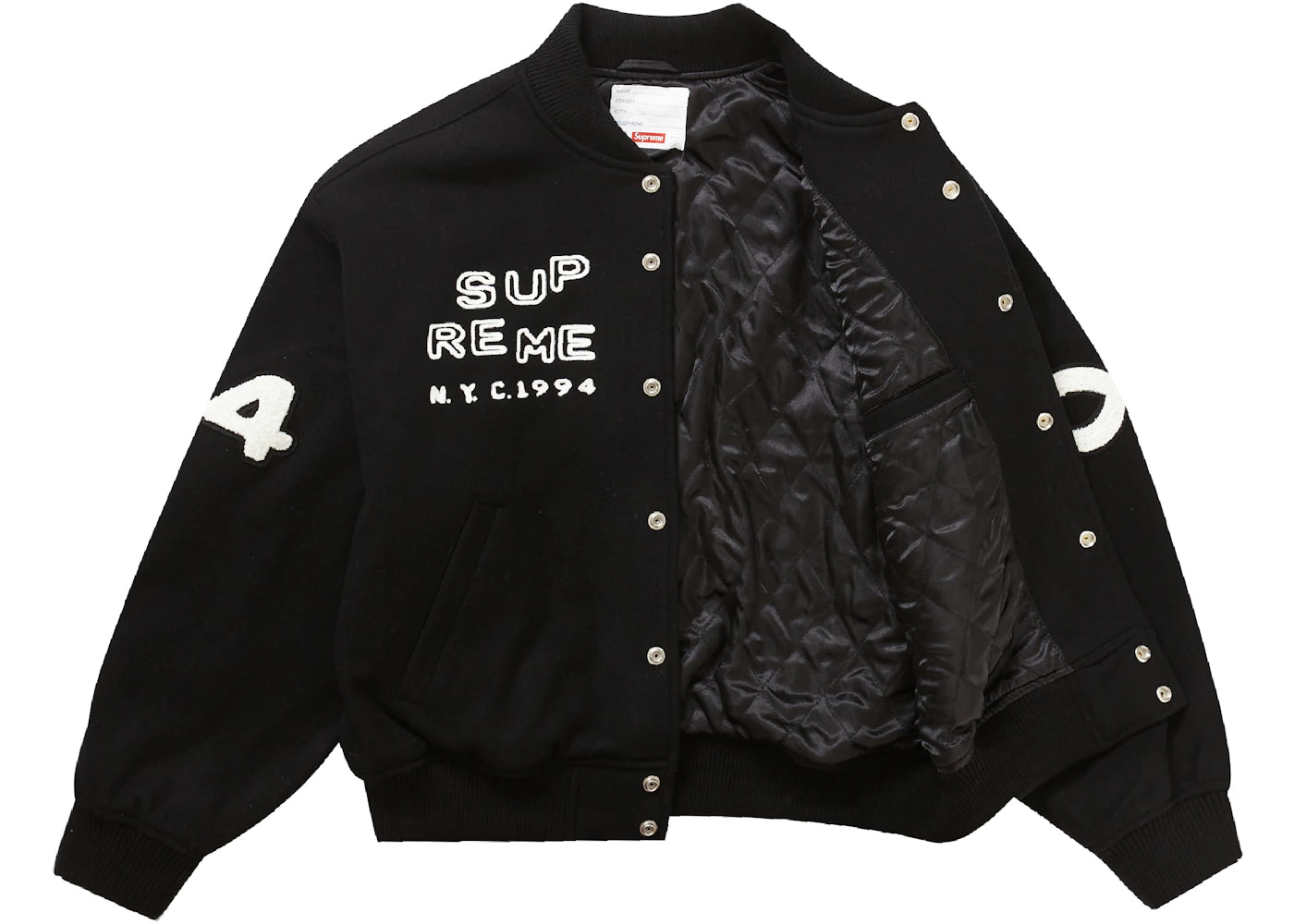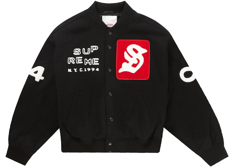 The Supreme Tourist Varsity Jacket Black is now available at Side Kicks!