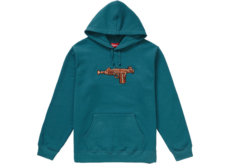 The Supreme Toy Uzi Hooded Sweatshirt Dark Teal is now available at Side Kicks!