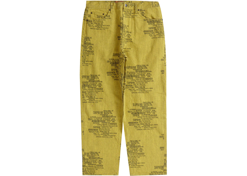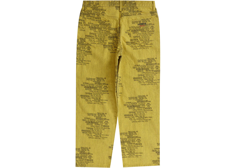 Supreme Trademark Jacquard Baggy Jean Washed Yellow