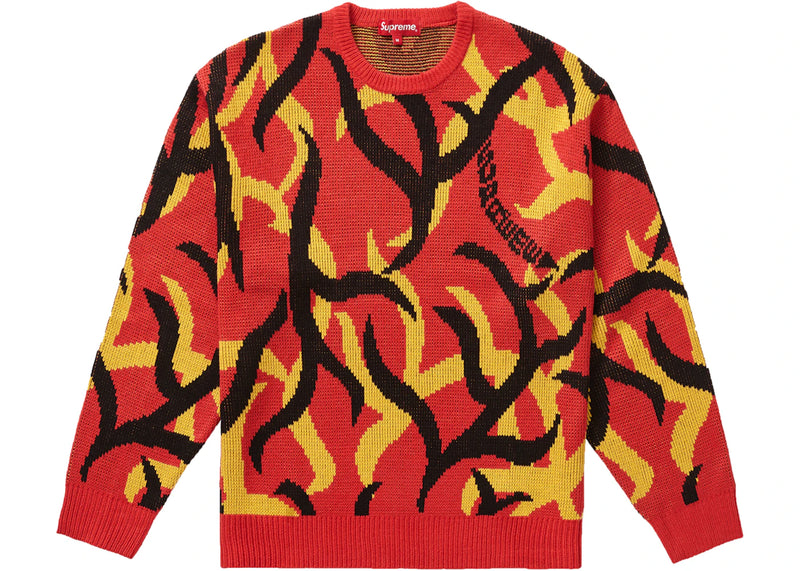The Supreme Tribal Camo Sweater Red is now available at Side Kicks!