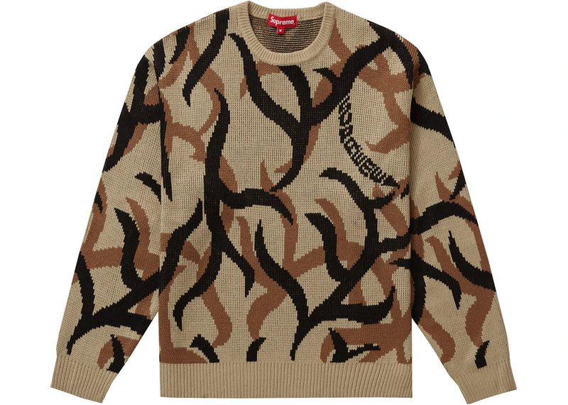 The Supreme Tribal Camo Sweater Tan is now available at Side Kicks!