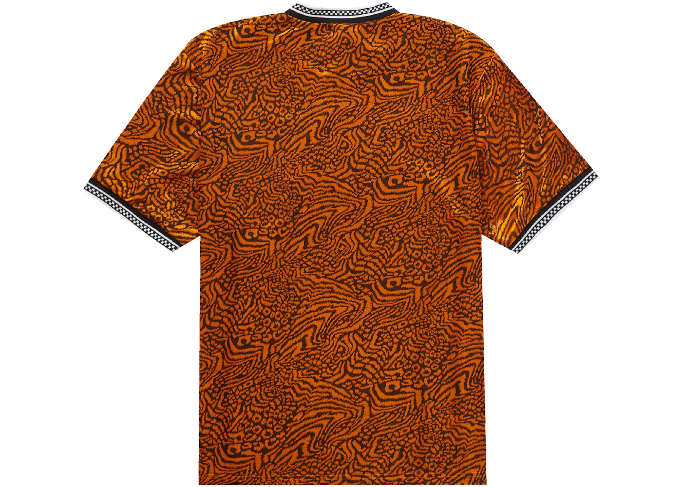 The Supreme Umbro Jacquard Animal Print Soccer Jersey Orange is now available at Side Kicks!