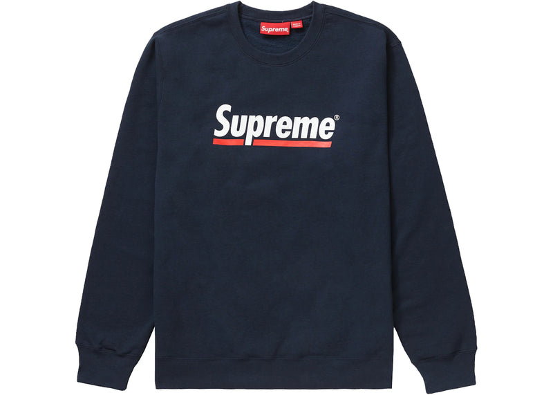 The Supreme Underline Crewneck Navy is now available at Side Kicks!