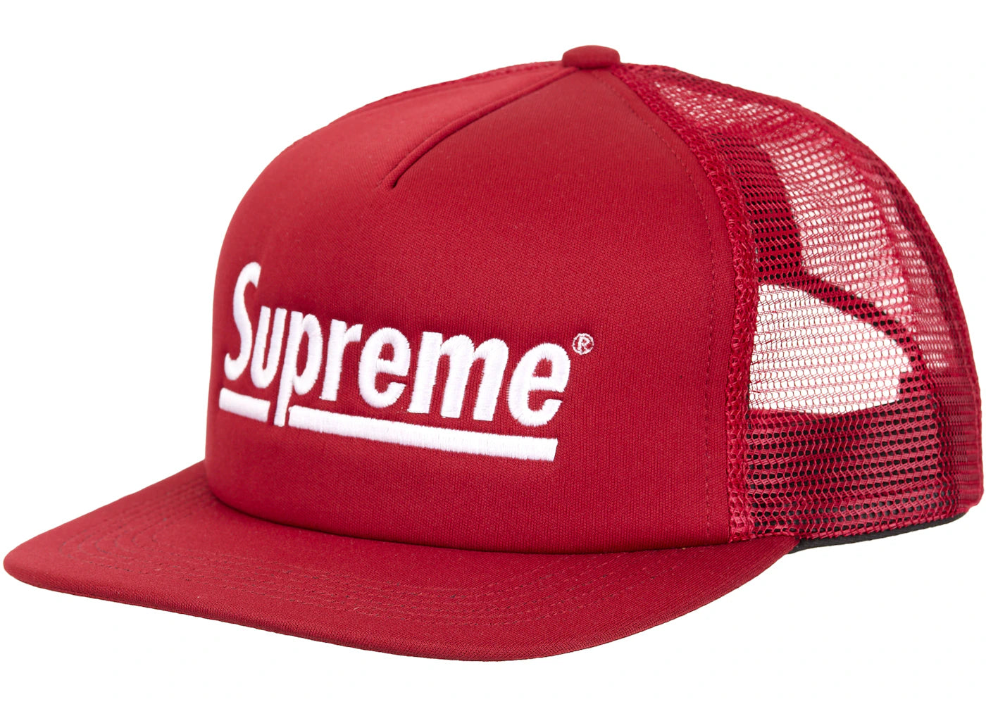 The Supreme Underline Mesh Back 5-Panel Cardinal is now available at Side Kicks!