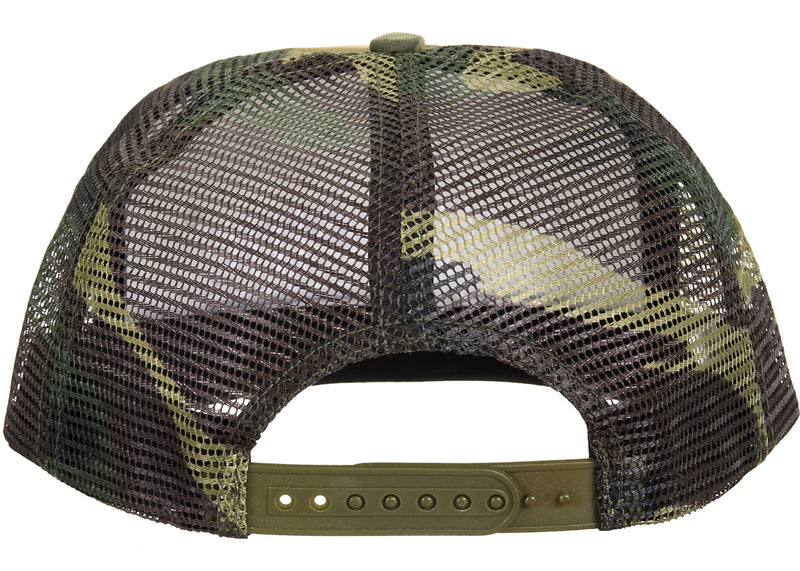 The Supreme Underline Mesh Back 5-Panel Woodland Camo is now available at Side Kicks!