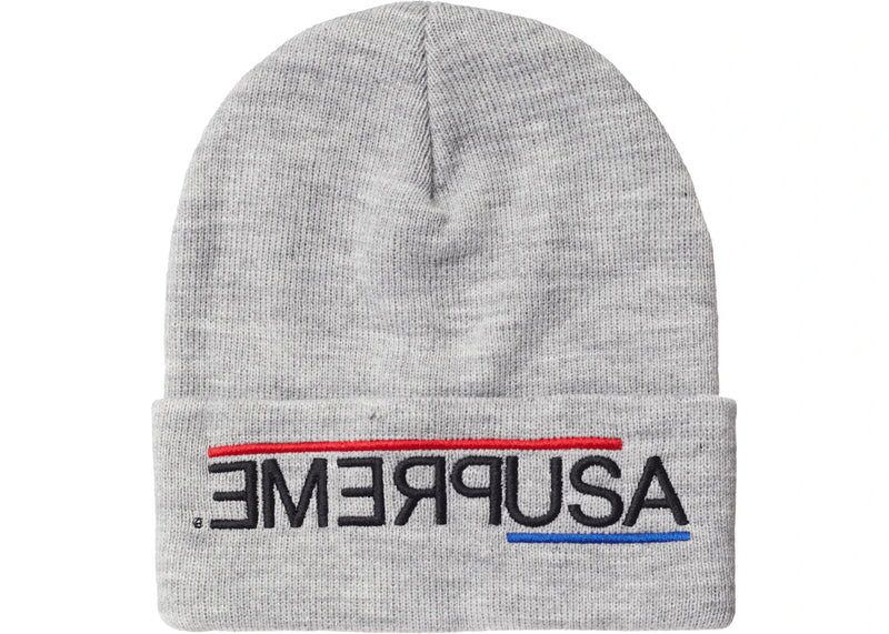 The Supreme USA Beanie Heather Grey is now available at Side Kicks!