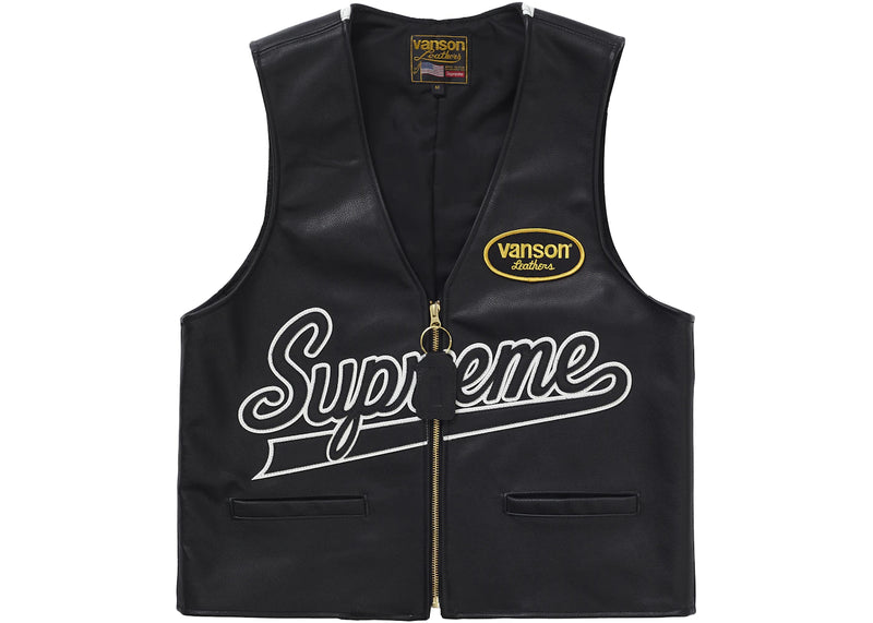 The Supreme Vanson Leathers Spider Web Vest Black is now available at Side Kicks!