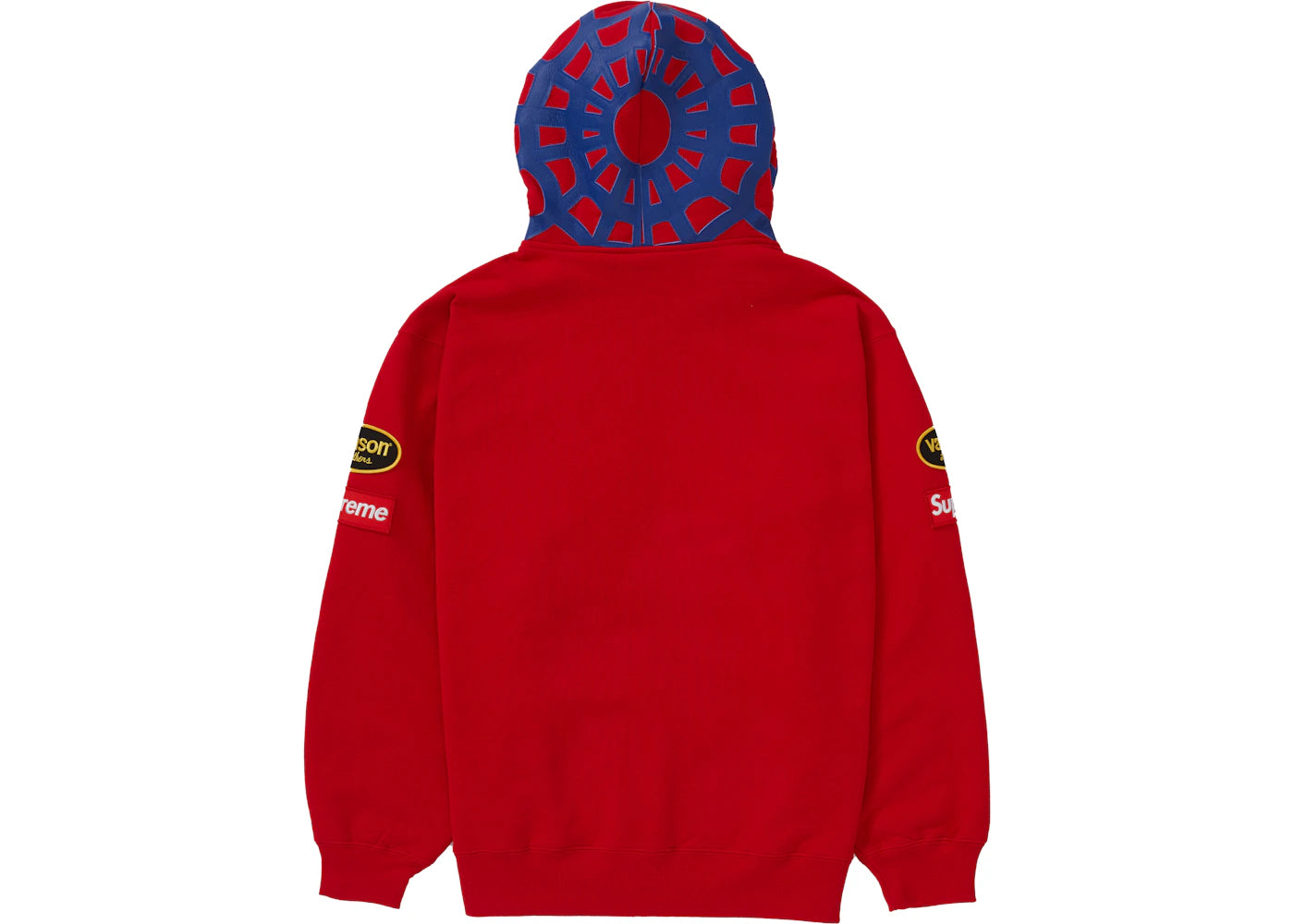 The Supreme Vanson Leathers Spider Web Zip Up Hooded Sweatshirt Red is now available at Side Kicks!