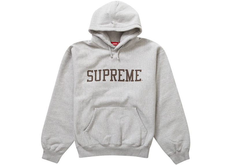 The Supreme Varsity Hooded Sweatshirt Heather Grey is now available at Side Kicks!