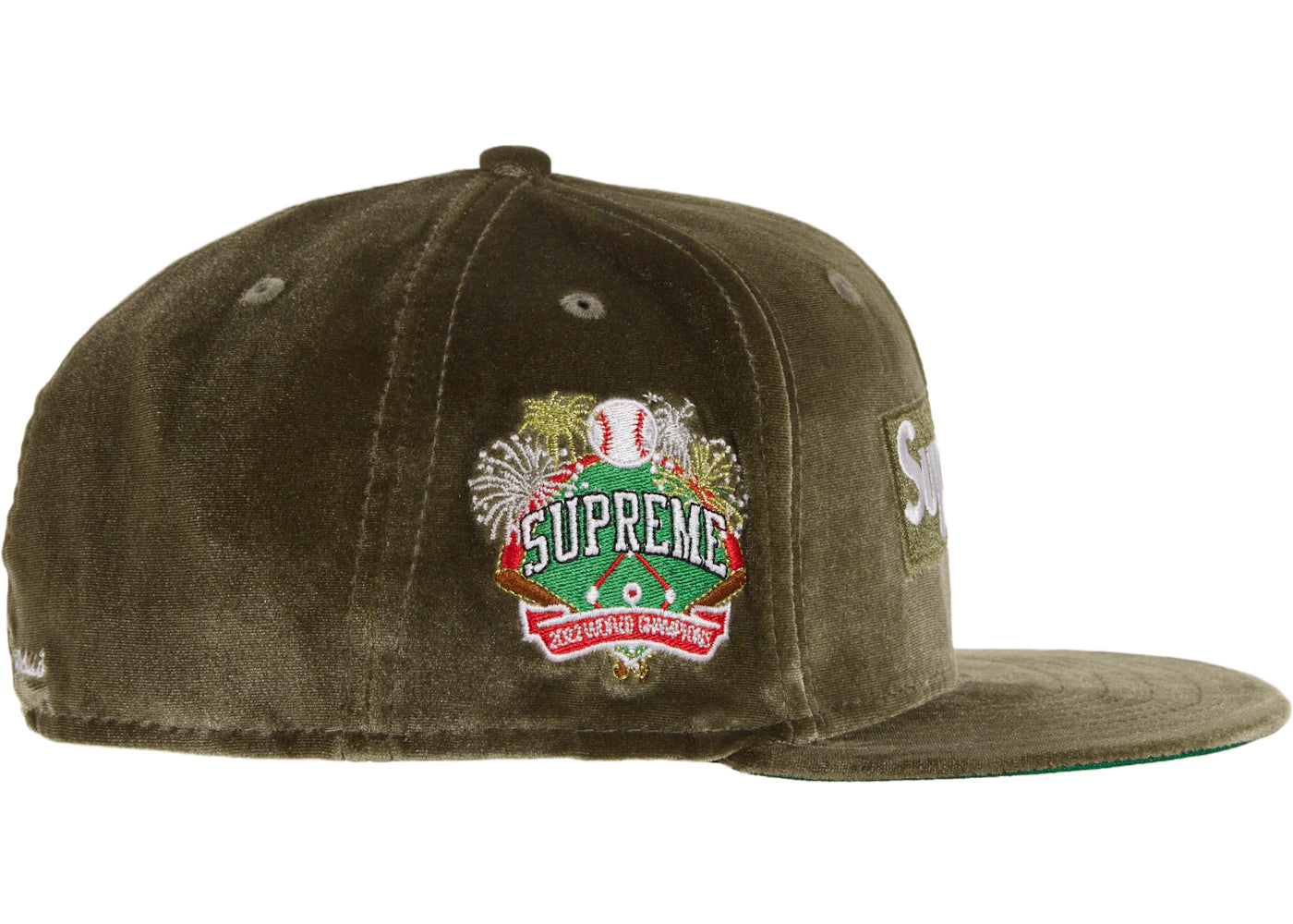 The Supreme Velour Box Logo New Era Olive is now available at Side Kicks!
